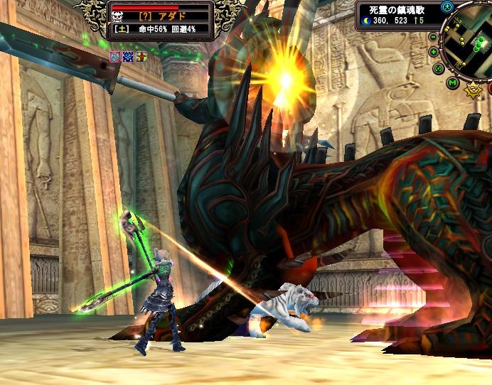 さてさて、Lv60にもなったことですし、早速黄昏60武器つくってみました「骸の双斧」。ググッと物理攻撃力が伸びますね~。倉庫に腐りかけてた5-ルビーをいれてひとまずOK。でも、サブキャラにお金かけるのもったいなくって、麻衣子にはこれが、今まで出一番出費した装備。もちろん、スキルも覚えが悪く・・・、SPも溜まりまくりです。でもでも、炎の龍のスキルはとりたいの。あれってなんて名前のスキル?