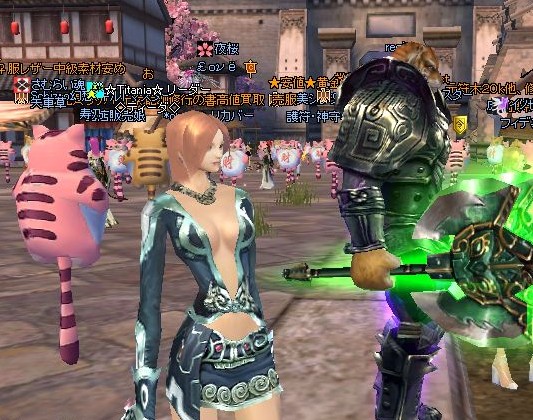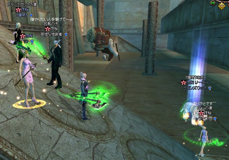 おでん戦が終わったあとに、クエ絡みで入り口に戻ってからしばらくの雑談タイム。ブランズウックさんから仕掛けられて、Duel(?)も初体験です。双斧で左右から交互にシャキシャキするのが散髪してあげてる感じでしたが・・・、調子にのってスキル使い始めるとあっさりやられちゃいました。><